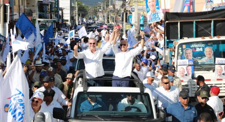 El presidente Abinader llegó al punto de partido alrededor de las 3 de la tarde, y de inmediato desfiló junto a Ulises, siendo seguidos por la vicepresidenta Raquel Peña y la candidata a vicealcaldesa Mariana Moreno.